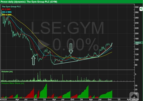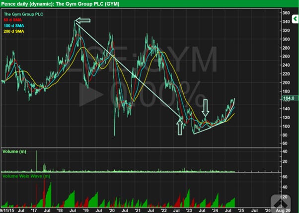 I was attracted firstly by the change in the chart which became clear around March. Changes in charts are great indicators in my opinion but the change needs to be significant. You can see on the chart above that at 2017-18 the chart curved up but since 2019 the chart has been a sequence of up and down spikes both large and small over the years, short-term ones and very volatile. Since April 23 the chart has made a clear curve up that is different to the previous chart history. This coincided with Richard Darwin, CEO stepping down. Was Richard Darwin the problem that the market wasn’t happy with? The line shows you Richard Darwin’s term in office. I don’t know but it is interesting. John Treharne, the Gym Club founder, became executive chairman during the hunt for a new CEO in early 2023. Treharne must have been impressed by Will Orr, the new CEO, as they hired him in April and waited 6 months till November for him to take his seat. Treharne was the CEO at the floatation and still holds 1.63m shares, just under 1%. GYM has obviously not been a great long-term investment over its 9 years as a public company, unless you were lucky enough to sell out on the highs. They took a huge wallop through covid with the lock downs then bounced fast but since late 2021 it had been one long decline. In September 2022 the co appointed a new CFO, Luke Tait, formerly CFO at Nandos. A year later in September 2023, Will Orr joined as CEO, formerly MD of Times Media, part of News Corp. He was there for 3 year, prior to that he was MD of RAC Consumer Roadside for 3 years.